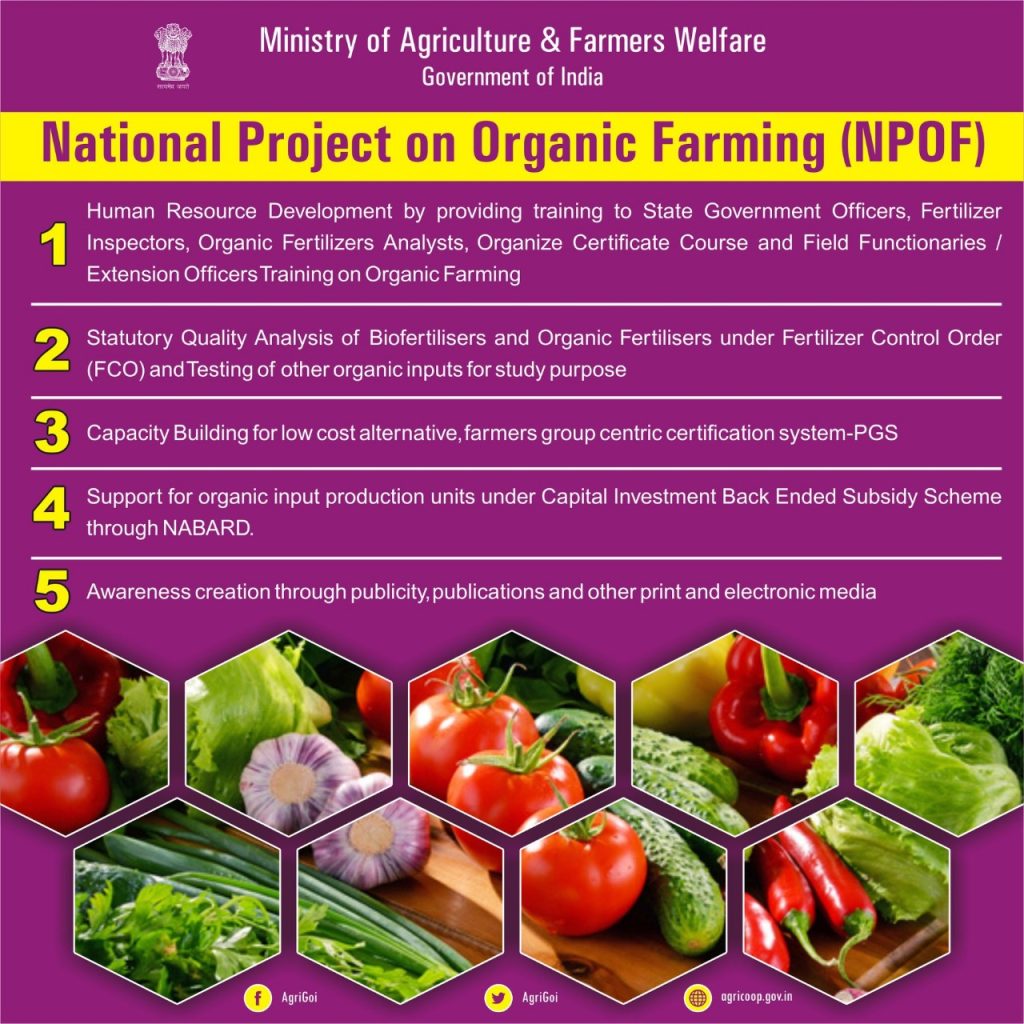 India’s organic policy framework includes the National Programme for Organic Production (NPOP) for certification and exports, and the Paramparagat Krishi Vikas Yojana (PKVY) for domestic organic promotion through cluster-based farming.