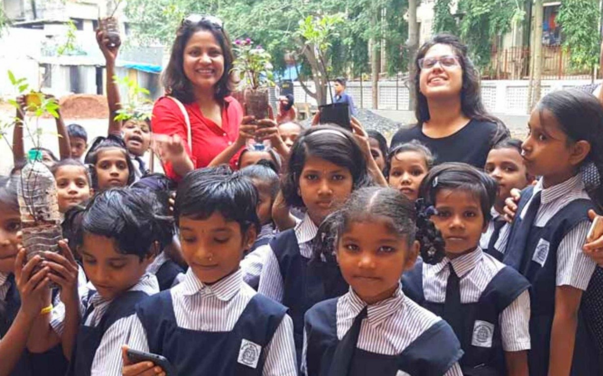 The great success of the Green School Project has reached many citizens of Powai-Hiranandani who decided to volunteer with us. Due to this, the team for the gardening and upcycling workshop consisted of Sonali and Shruti. In particular, Sonali is a very talented woman living in Hiranandani that has experience in upcycling workshop.