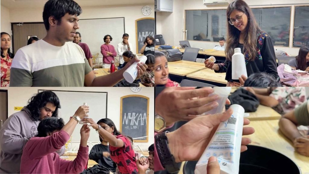 The objective of the workshop was to build practical understanding around circular economy principles, packaging innovation, and the role of design in reducing plastic waste and carbon impact. Rather than approaching sustainability only through theory, the session was structured as a live, experience-driven engagement with real packaging solutions.