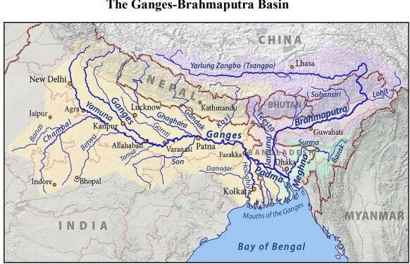 This map illustrates the vast Ganges-Brahmaputra river system, showcasing how the Teesta River is an integral tributary of the Brahmaputra. It emphasizes the transboundary nature of these rivers and their significance in sustaining ecosystems and livelihoods across India, Bangladesh, Nepal, and Bhutan.