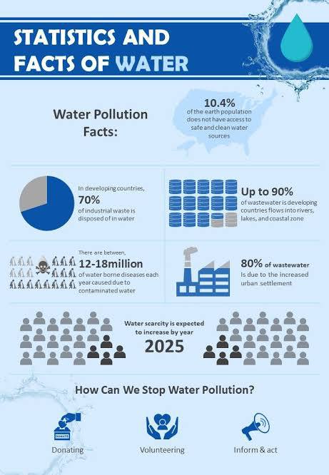 This infographic sheds light on the alarming global water crisis, showing that up to 90% of wastewater in developing countries flows untreated into natural water bodies. It emphasizes key facts like 12–18 million cases of waterborne diseases annually, and offers simple action steps—donating, volunteering, and spreading awareness—as ways to combat water pollution.