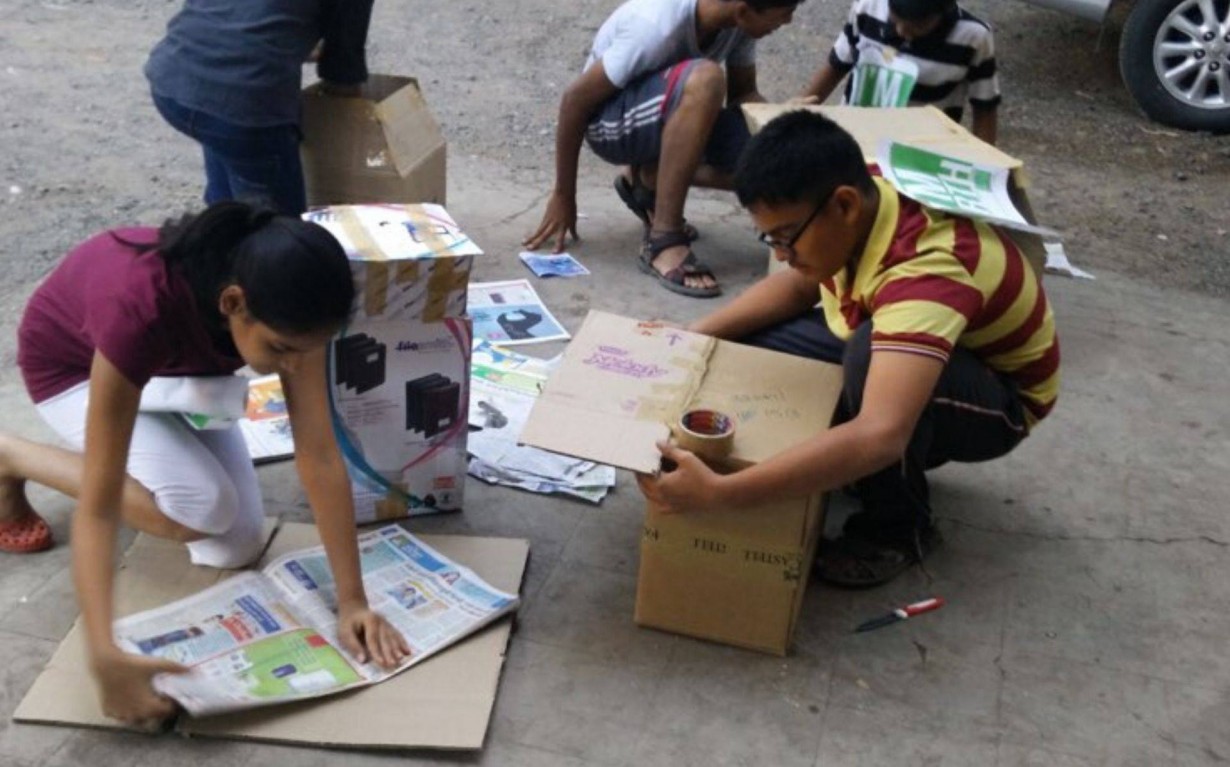Realising that unavailability of garbage bins leads to unhygienic and unpleasant environment, the children thought of making garbage bins out of waste cartons.